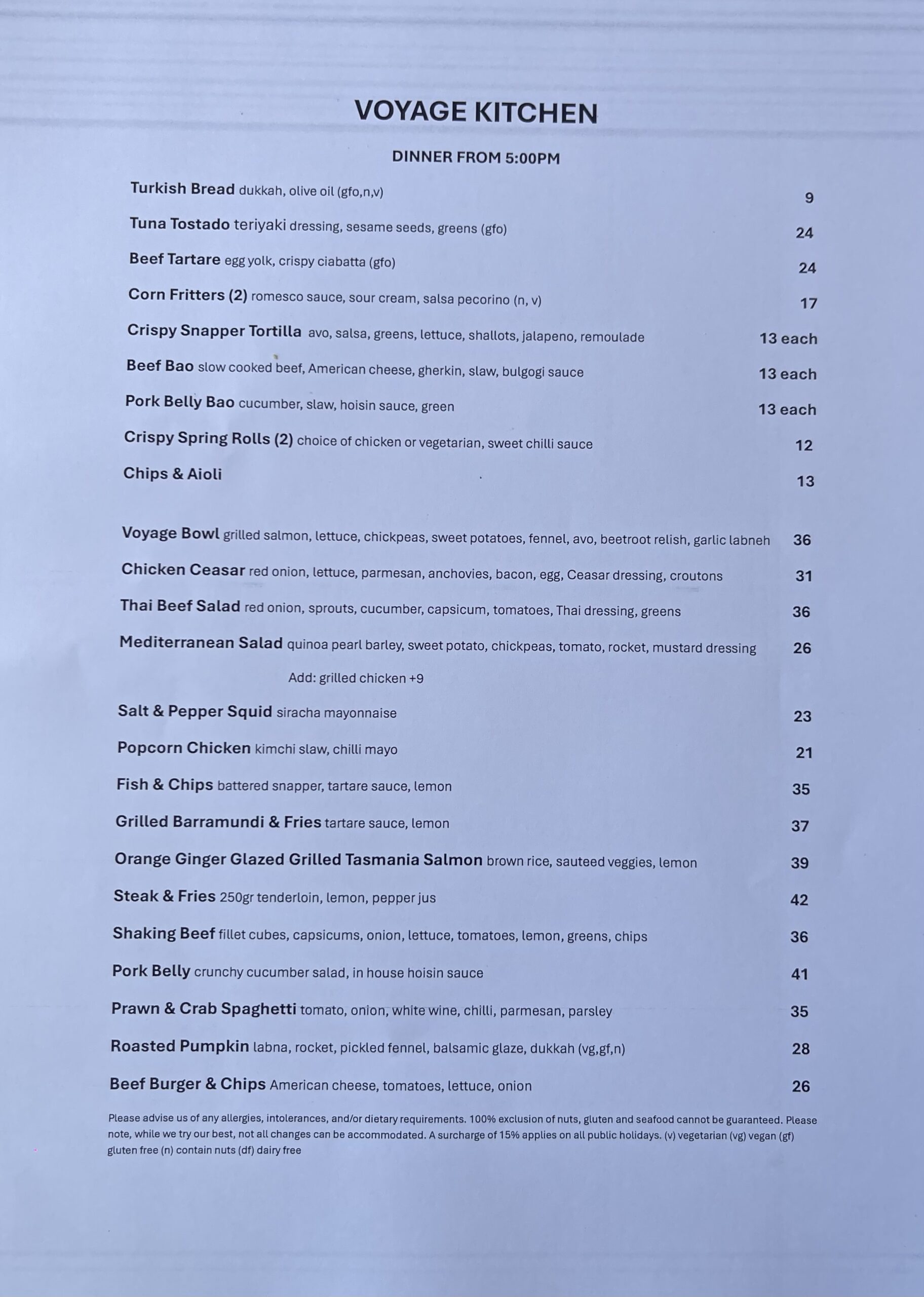 ** (Dinner closing times subject to weather)**