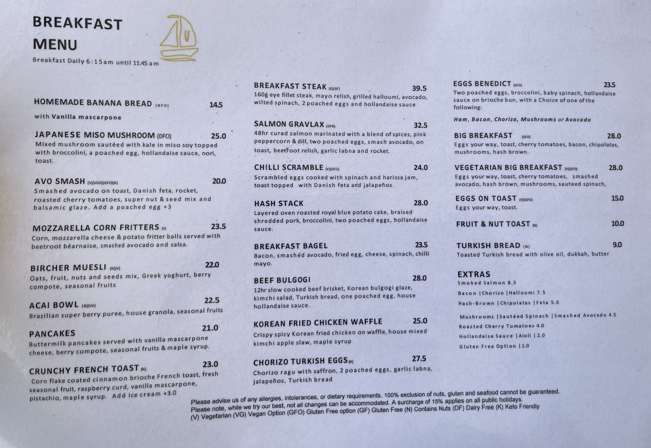 Breakfast 6:30AM – 11:45AM